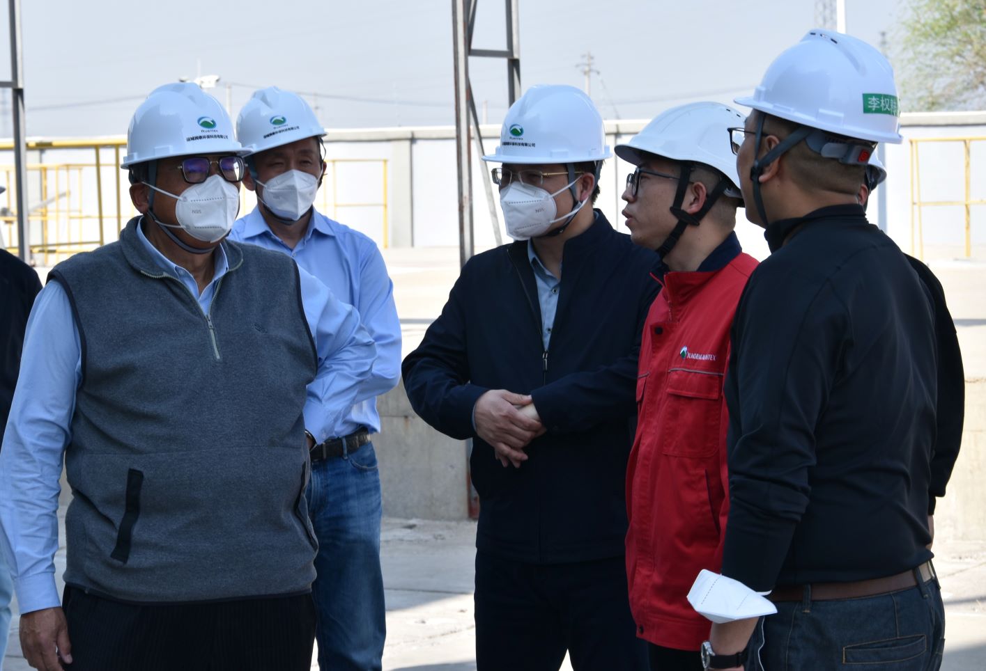 4月1日下午,日友環(huán)??萍脊煞萦邢薰径麻L張芳正來到運城潤泰視察指導(dǎo)工作。北京潤泰環(huán)保科技有限公司總經(jīng)理吳耀賢、副總經(jīng)理朱駿、日友特助張驥陪同考察。運城潤泰總經(jīng)理李澤治、副總經(jīng)理薛飛虎、李權(quán)耕陪同講解并進(jìn)行專項工作匯報。