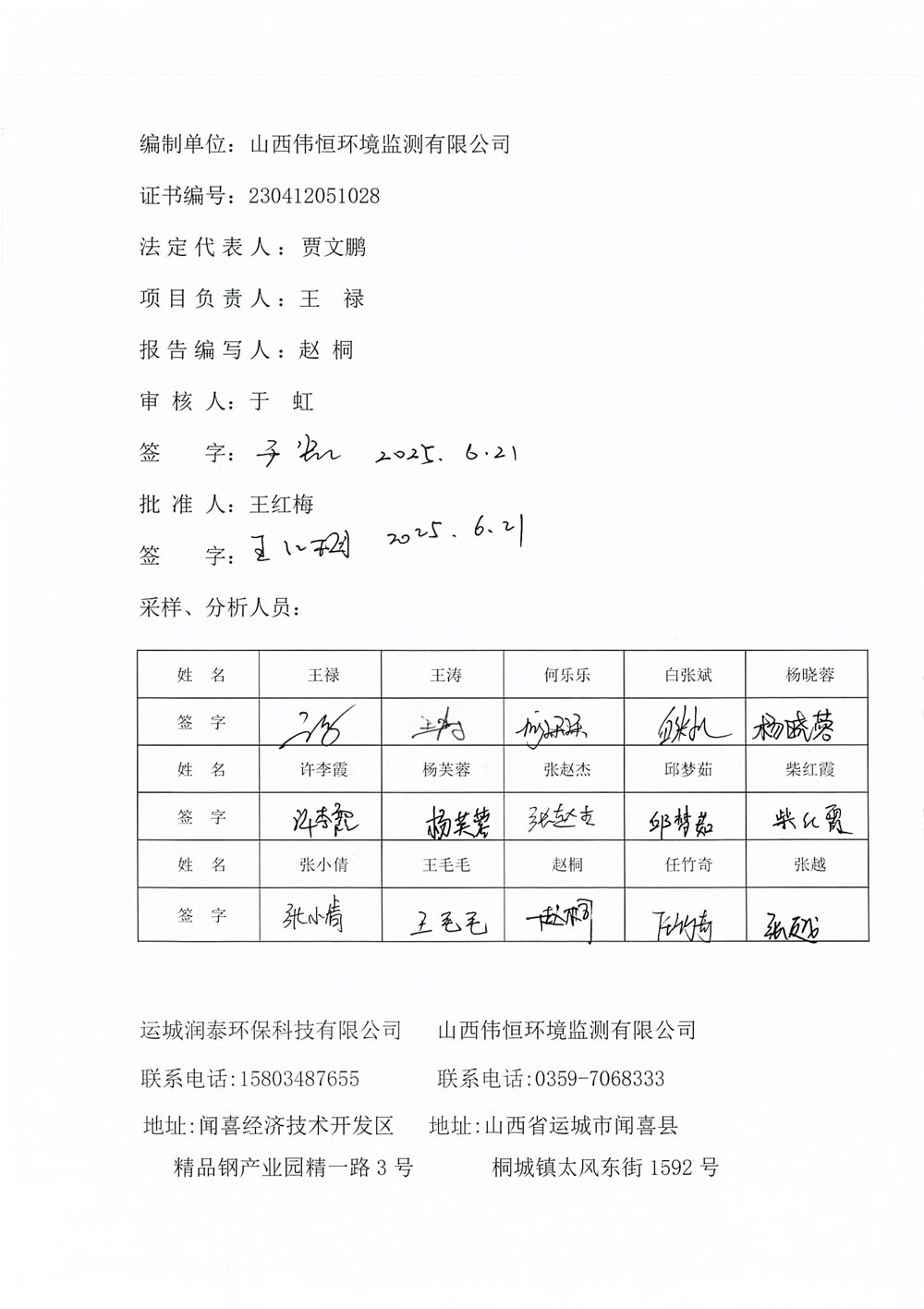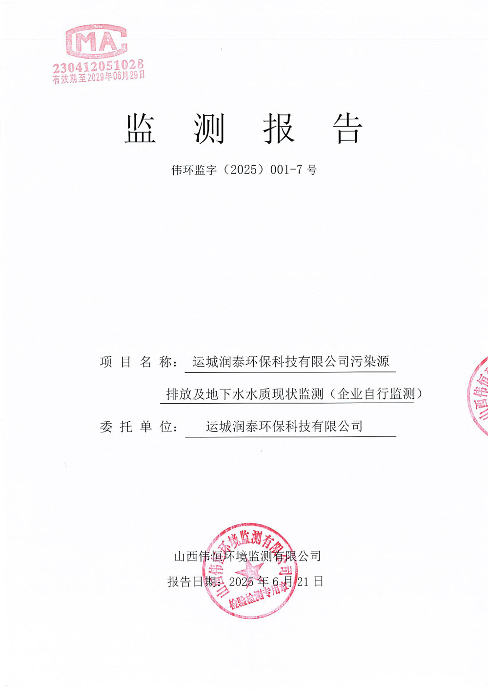 2025年潤泰環(huán)保六月份自行監(jiān)測報(bào)告