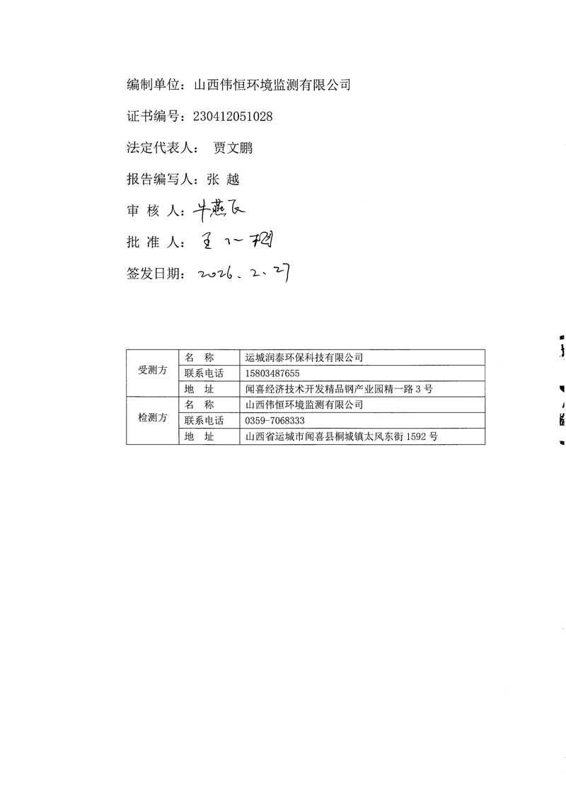 2026年潤泰環(huán)保二月份自行監(jiān)測報告